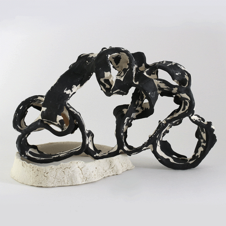 Ice Circles, ceramic, porcelain pigments, glaze, 15Hx 16W x 14Dcm